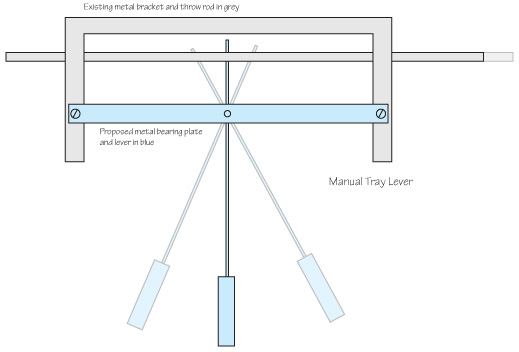 In operation, a track is selected and the tray is pulled out manually until the approach track and selected track on the tray are lined up. The manual levers are thrown and the tapered pins move to lock the tray in position. Trains can now be driven onto or off the tray.